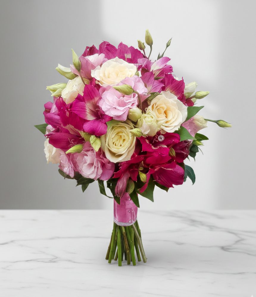 Компактен букет Фантазия е цветна аранжировка от етествени цветя, която пленява с красотата и излъчването си. Подарете празнична атмосфера на всяка любима жена, която е ценител на цветята и красивите подаръци.