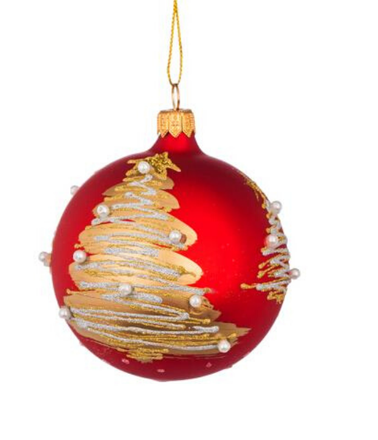 Коледна червена топка с елхичка - подарете огнено бижу за коледното дръвче.