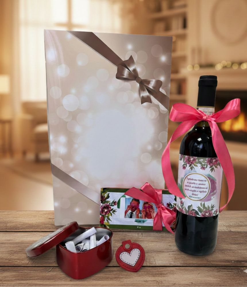 Търсите оригинален подарък за Вашата половинка, подарък, който да показва специално отношение и който да е създаден специално за повода? Имаме точното решение - романтичен комплект с персонализирано вино, персонализиран шоколад и метална кутийка "30 причини да те обичам" с папируси и ключодържател "Две сърца една любов". Най-хубавото е, че благодарение на подаръчната кутия изненадата е готова да бъде поднесена на любимата жена.